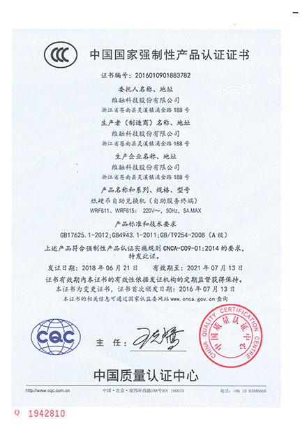 自助回單機(jī)CCC證書(shū)