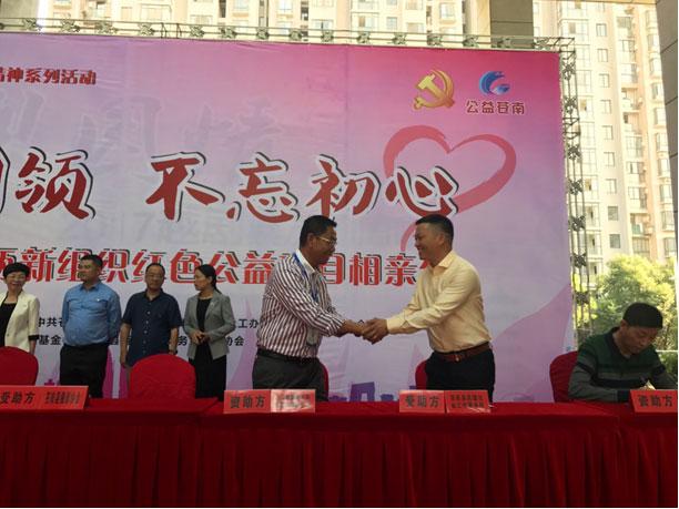 10月25日,蒼南縣兩新組織為貫徹落實黨的十九大精神系列活動,開展了主題為“黨建引領,不忘初心”的蒼南縣第二屆兩新組織紅色公益項目相親會。縣委常委、組織部長李青出席相親會,現場18個社會組織的32個公益創投項目被24 家兩新組織黨組織或愛心人士認領,并聯姻簽約,涉及資金52萬元。浙江維融電子科技股份有限公司現場牽手了“煥新家園——為百歲老人營造安居空間”公益創投項目,公司黨支部書記魏宏枕代表公司捐贈善款,為蒼南縣的65位百歲高齡老人送去一絲溫暖,奉獻一份綿薄之力。