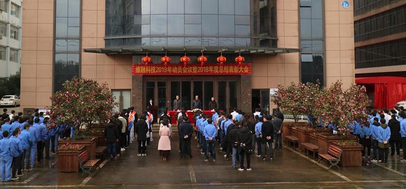 2019年2月22日早上,維融科技2019年動員會暨2018年度總結表彰會議在公司園區內召開。會議總結了2018年取得的成績和經驗,明確2019年的奮斗目標及方向,動員各部門立足實際,轉變作風、創新實干,努力開創2019年工作新局面,會議還表彰了年度優秀個人。全體在司職工共計300人參加會議。