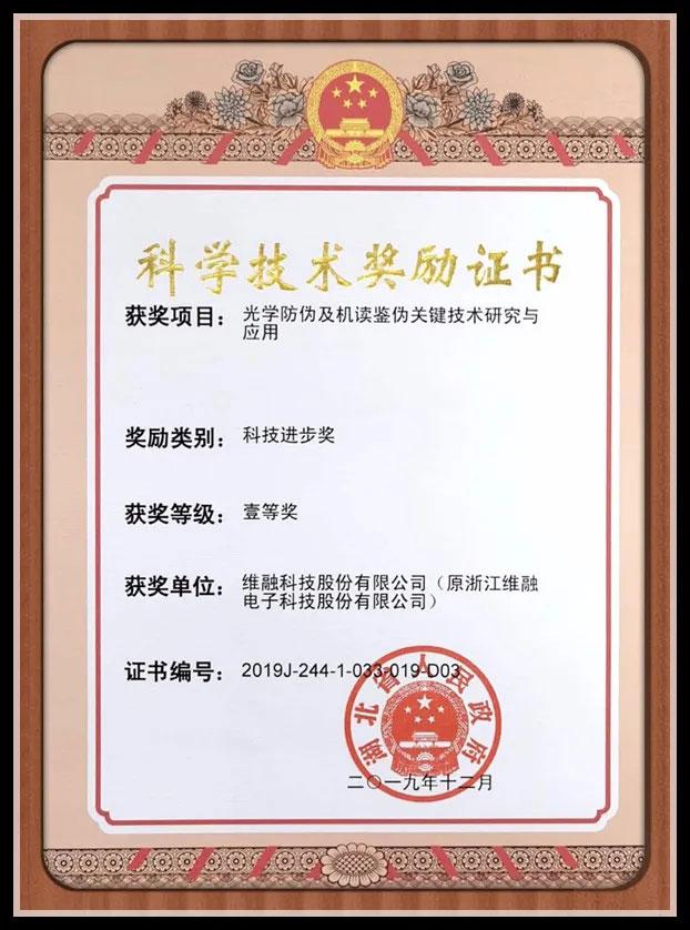 近期,湖北省科學(xué)技術(shù)獎(jiǎng)勵(lì)大會(huì)在武漢召開,隆重表彰了2019年度科技事業(yè)進(jìn)步、經(jīng)濟(jì)社會(huì)發(fā)展作出突出貢獻(xiàn)的科學(xué)技術(shù)人員和組織。維融科技股份有限公司的魏偉、關(guān)衛(wèi)參與了“光學(xué)防偽及機(jī)讀鑒偽關(guān)鍵技術(shù)研究與應(yīng)用”項(xiàng)目的研究,其項(xiàng)目榮獲了湖北省科技進(jìn)步獎(jiǎng)一等獎(jiǎng)。