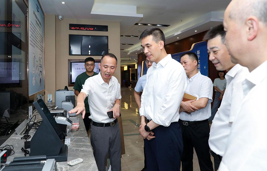 視察中,張書記一行參觀了維融產品展示體驗館,對不動產產權制證機、警務通綜合業務機、駕駛員體檢機、駕駛員考試機、駕駛證制證機、智慧貴金屬庫等幾款產品表示十分感興趣。張書記對維融這幾年的科研成果予以肯定,并向企業發展提出了寶貴的建議,鼓勵維融能擴大市場份額,有效提升產品銷售業績,積極提升企業整體競爭力并往資本市場發展。