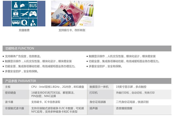 自助查詢終端可實現(xiàn)公眾的信息查詢、轉賬、繳費業(yè)務。<br>類型: 插電式<br>顏色: <br>品牌: 維融<br>型號:WRZ521